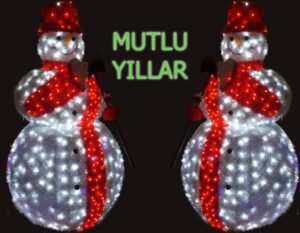 Yılbaşı kardan adamı, yılbaşının en sevilen figürlerinden biridir. Özellikle ışıklı kardan adam dekorları, hem gündüz hem gece dikkat çeken eğlenceli bir süsleme unsurudur. Farklı boyutlarda ve malzemelerde üretilen bu figürler; LED ışıklarla donatılarak dış mekânlarda da güvenle kullanılabilir.